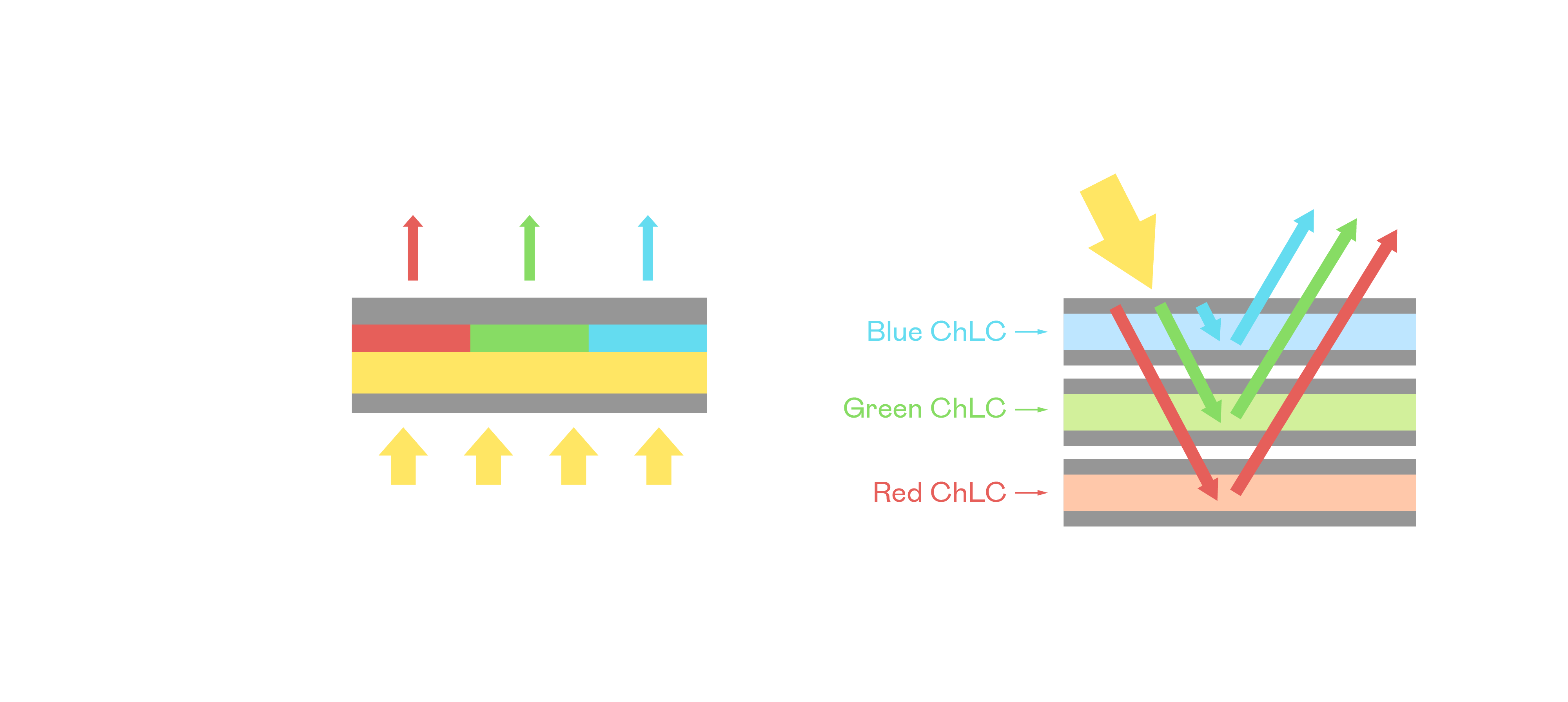 凯发娱乐胆固醇液晶显示器是由红、绿、蓝三层胆固醇液晶面板堆叠而成,并采用无彩色滤光片设计,减少环境光在反射过程中的损耗。